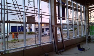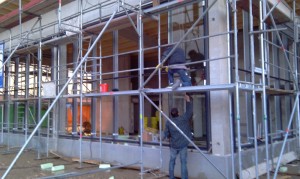 Aluminium – Glas Fassaden (Pfosten-Riegel- Konstruktion) oder Vorsatzfassaden durch Punkthalter getragen.